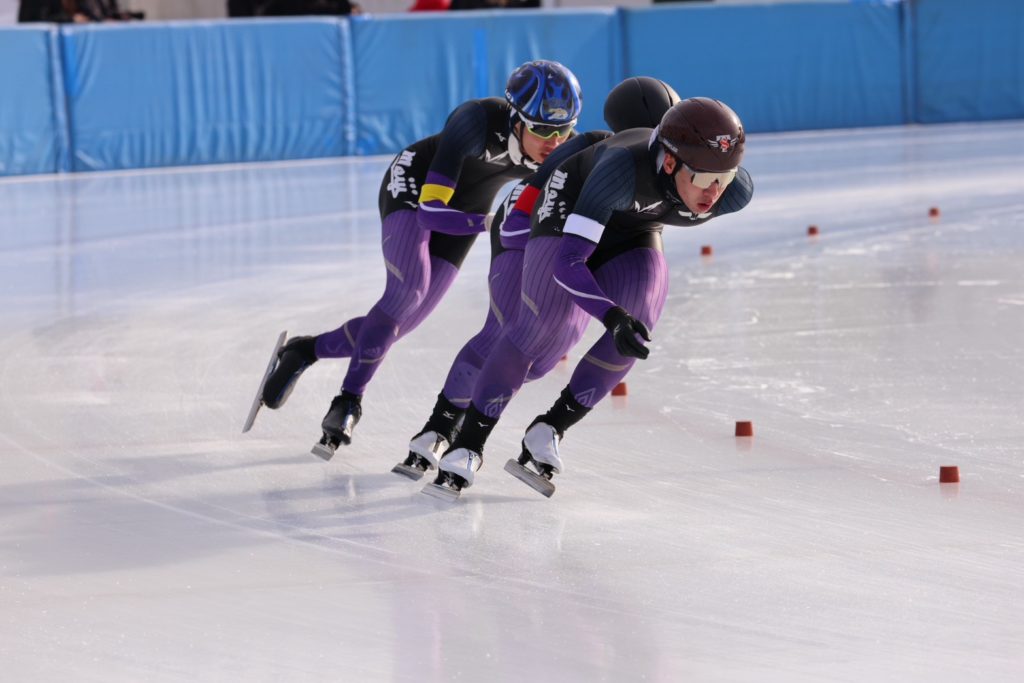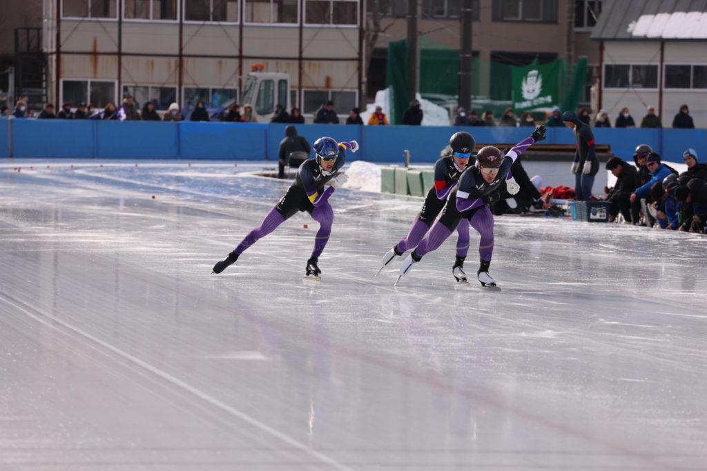 2026年1月8日 / 最終更新日時 : 2026年1月11日 ham179 お知らせ インカレ最終日 パシュート2位 第98回日本学生氷上競技選手権大会(インカレ)の3日目最終日は、釧路市柳町スピードスケート場で、男子2000mリレー、パシュート(団体追い抜き)、女子2000リレー、パシュート(団体追い抜き)の計4種目が行われました。 男子パシュート(8周)では、船崎 優太選手(2年) 、佐藤 太陽選手(3年)、 菊原 颯選手(3年)の3名が出場し、4分06秒67で見事第2位に輝きました。優勝した専修大学とは、0秒16差の僅差でした。最後に表彰台を確保し、良い形で最終日を終えることができました。男子2000mリレーは残念ながら失格となりました。選手の皆様、お疲れ様でした。 船崎優太選手 佐藤太陽選手 菊原颯選手 パシュートでのスケーティング ラストスパートで懸命に滑走する3人 コメントを残す コメントをキャンセルメールアドレスが公開されることはありません。 ※ が付いている欄は必須項目ですコメント ※ 名前 ※ メール ※ サイト 次回のコメントで使用するためブラウザーに自分の名前、メールアドレス、サイトを保存する。 上に表示された文字を入力してください。 Δ