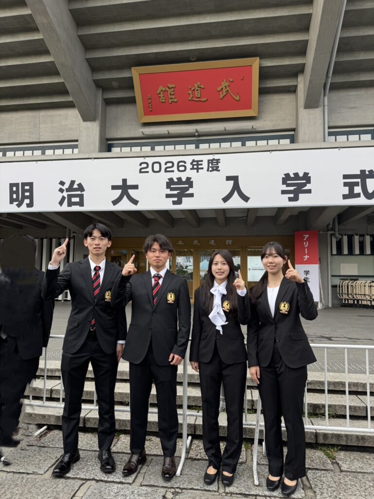2026年4月11日 / 最終更新日時 : 2026年4月11日 ham179 お知らせ 新入生4名が入学式 新年度スタート 4月7日(火)、日本武道館(東京都千代田区)にて2026年度明治大学入学式が催されました。今春スケート部スピード部門に入部した新入生4名も入学式に出席しました。既に入寮も済ませ、大学生して 新たな生活がスタートしています。20207年1月に北海道苫小牧市で行われる第99回インカレに向け、頑張ってほしいと思います。 左から三瓶煌泰さん、高見澤雅流さん、熊谷しゅうさん、佐藤芹那さんの新入生4名 コメントを残す コメントをキャンセルメールアドレスが公開されることはありません。 ※ が付いている欄は必須項目ですコメント ※ 名前 ※ メール ※ サイト 次回のコメントで使用するためブラウザーに自分の名前、メールアドレス、サイトを保存する。 上に表示された文字を入力してください。 Δ